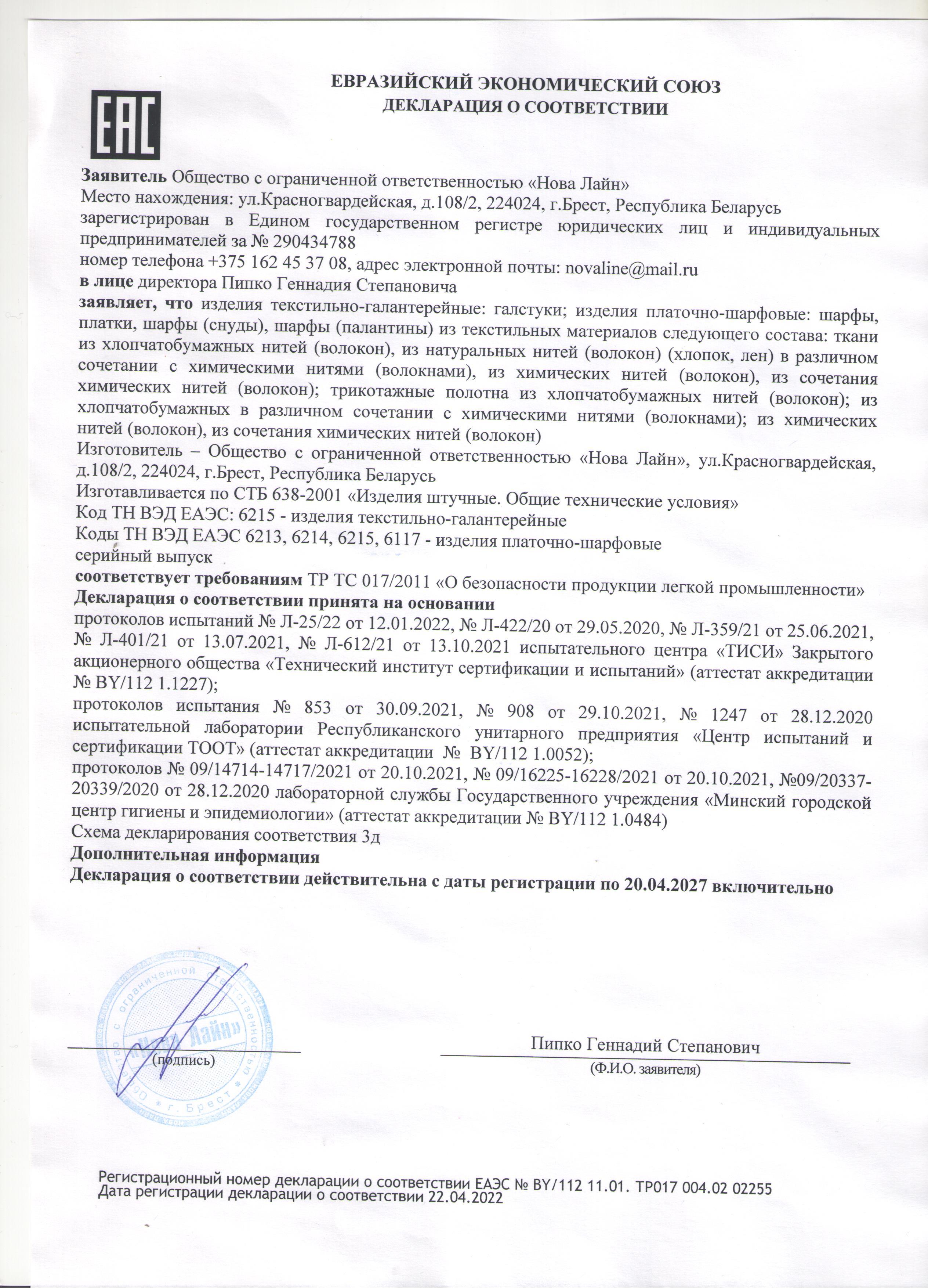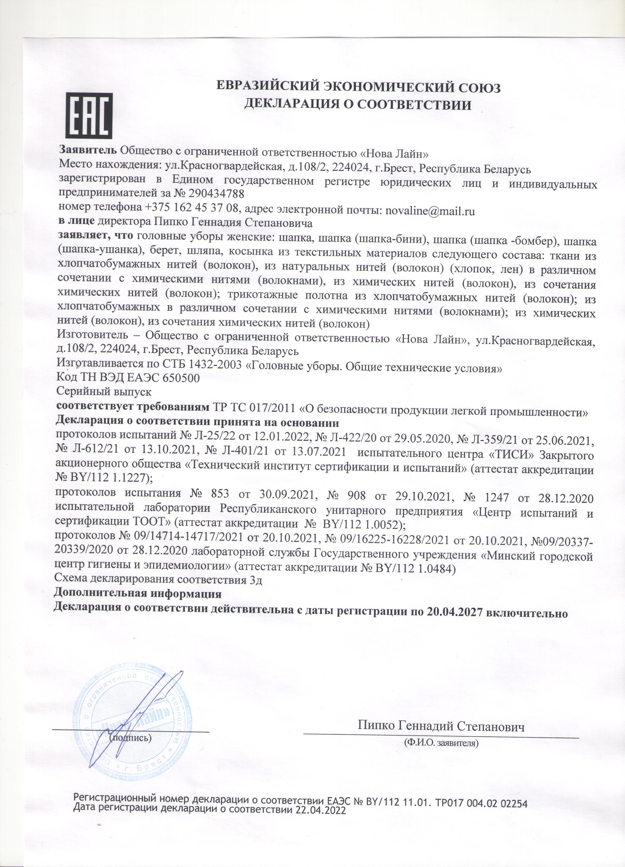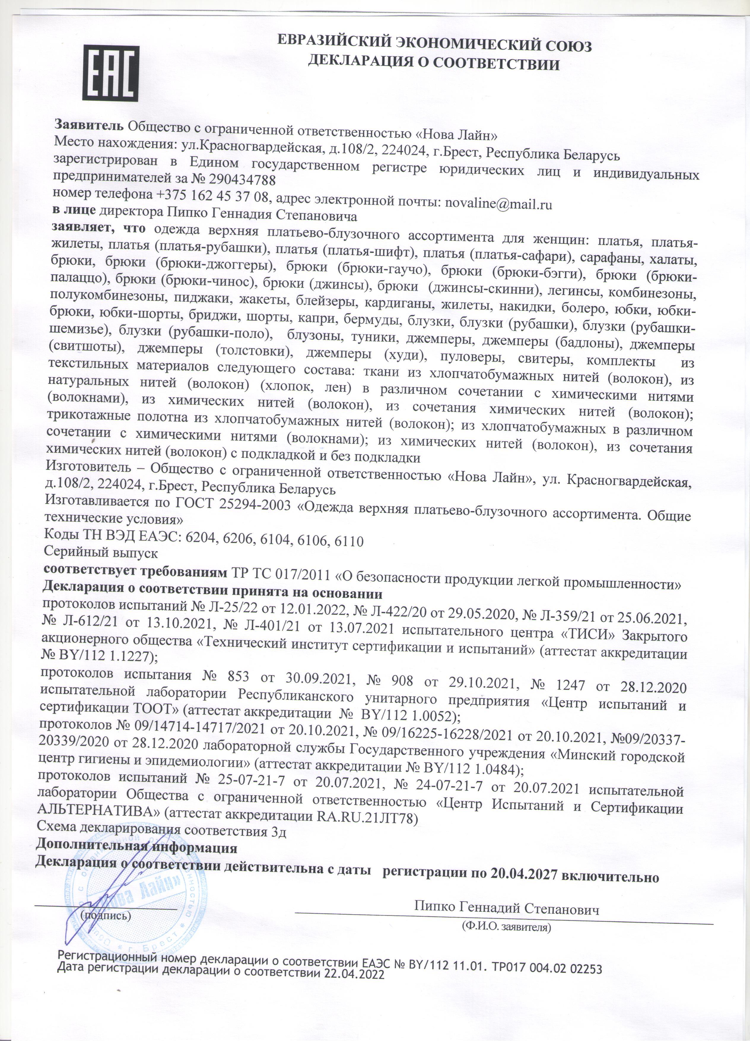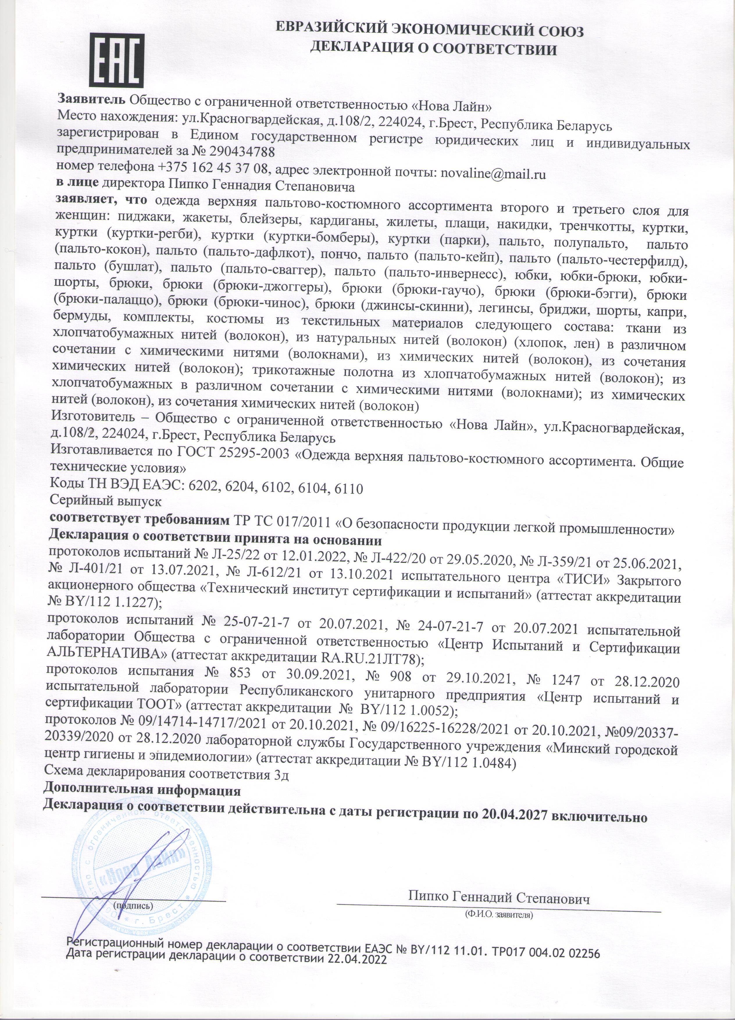 Декларация о соответствии (по ГОСТ 25294-2003)