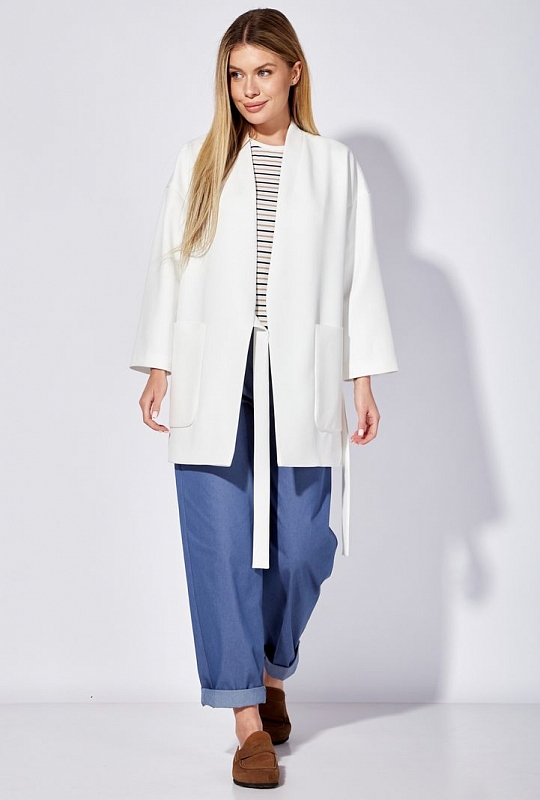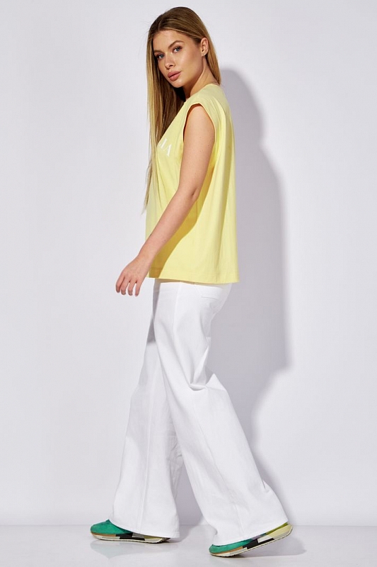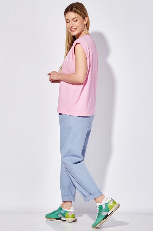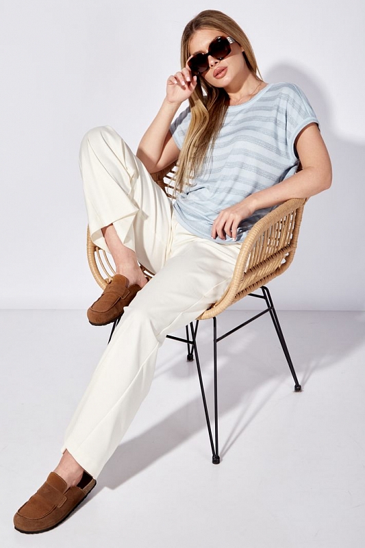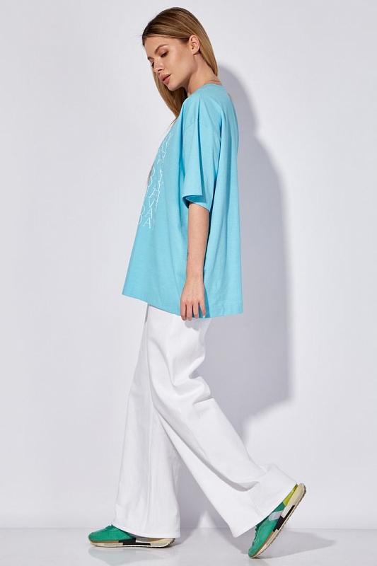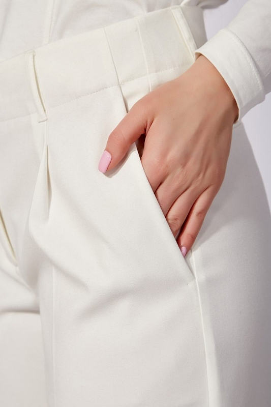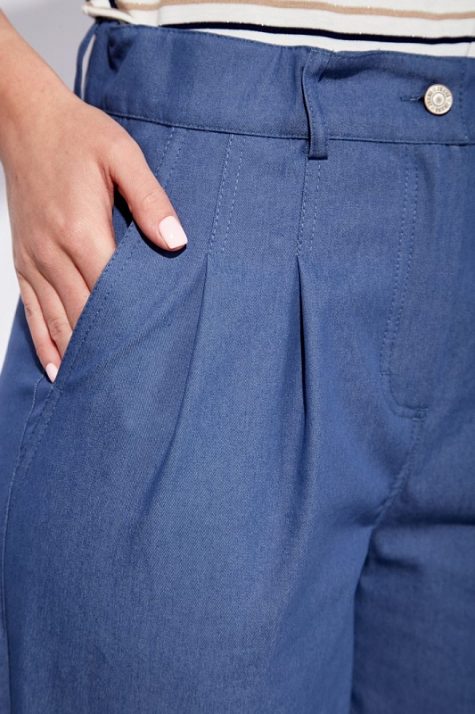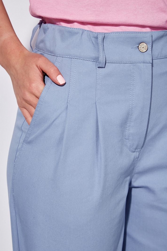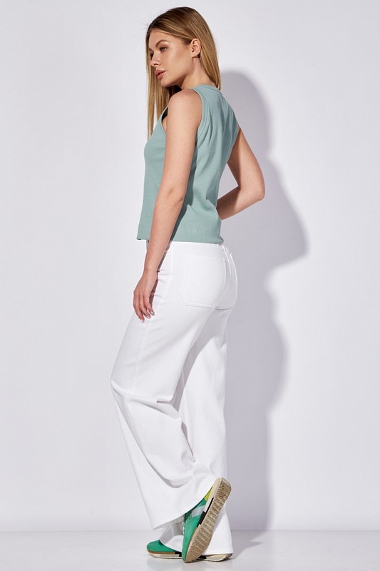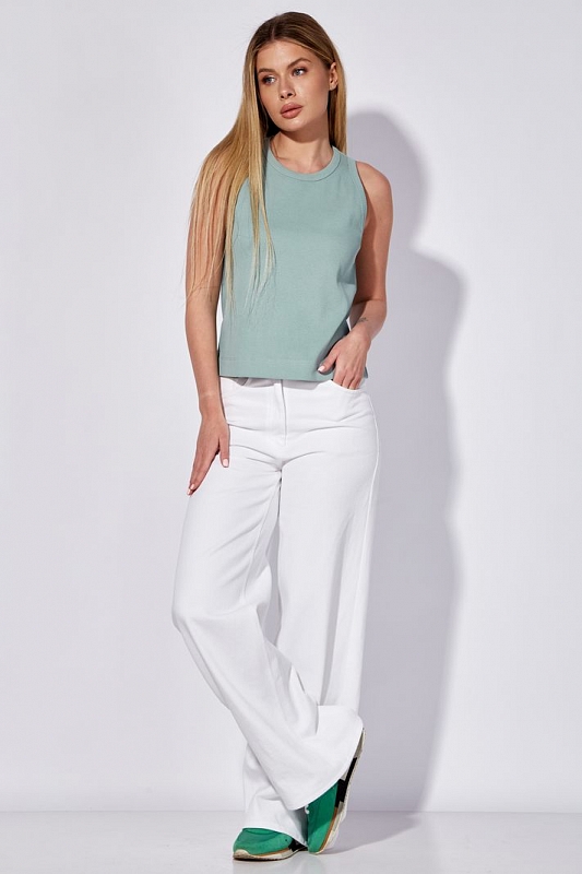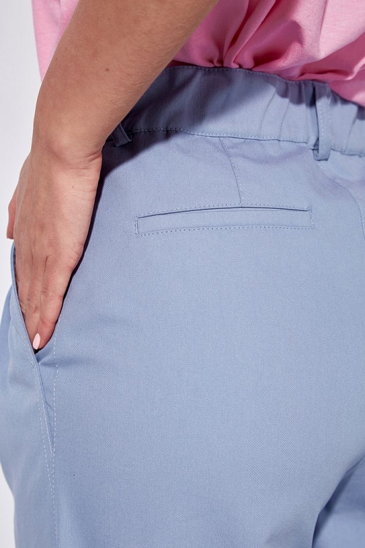 Базовые джинсы прямого силуэта, слегка зауженные к низу на притачном поясе с застежкой на молнию и пуговицу, с боковыми джинсовыми карманами спереди, с фигурной кокеткой и накладными карманами сзади.