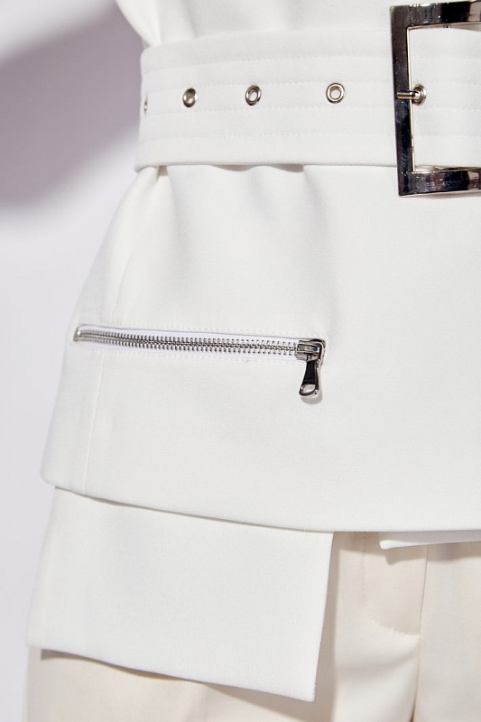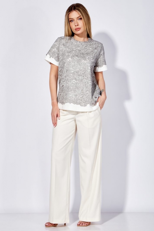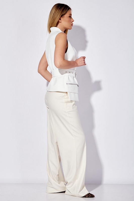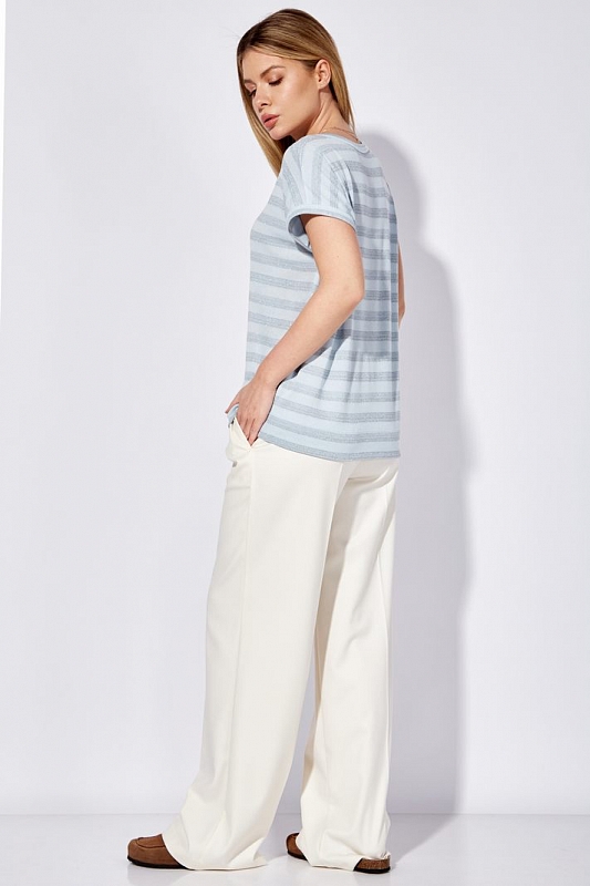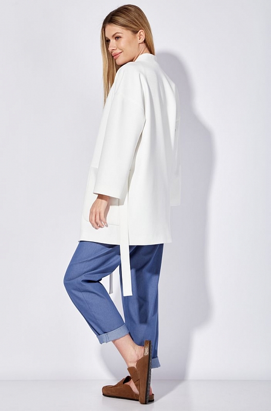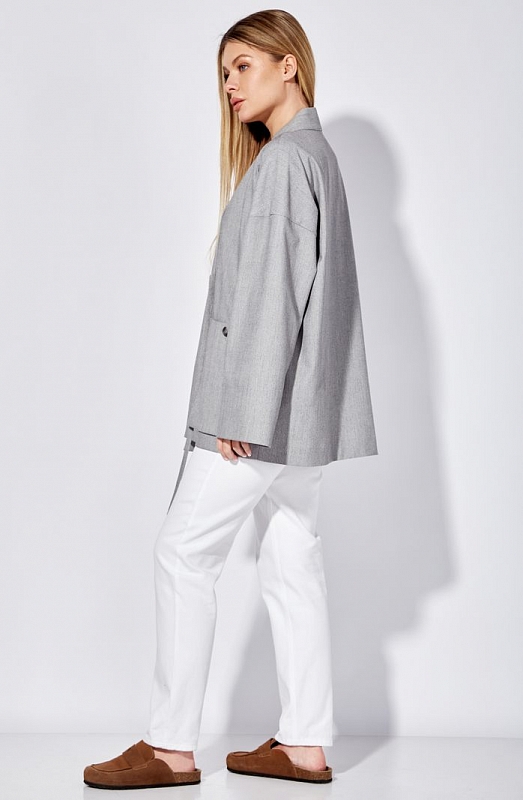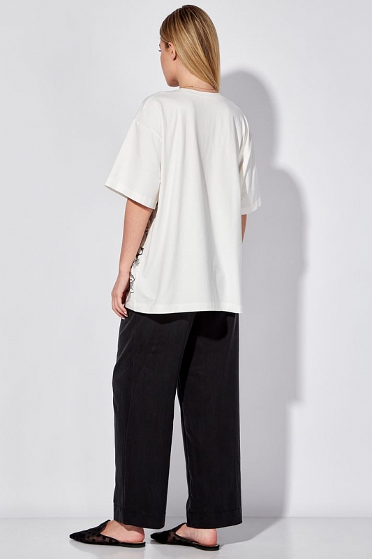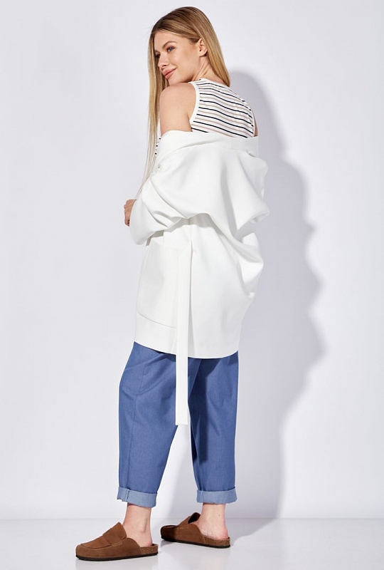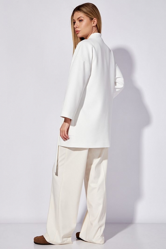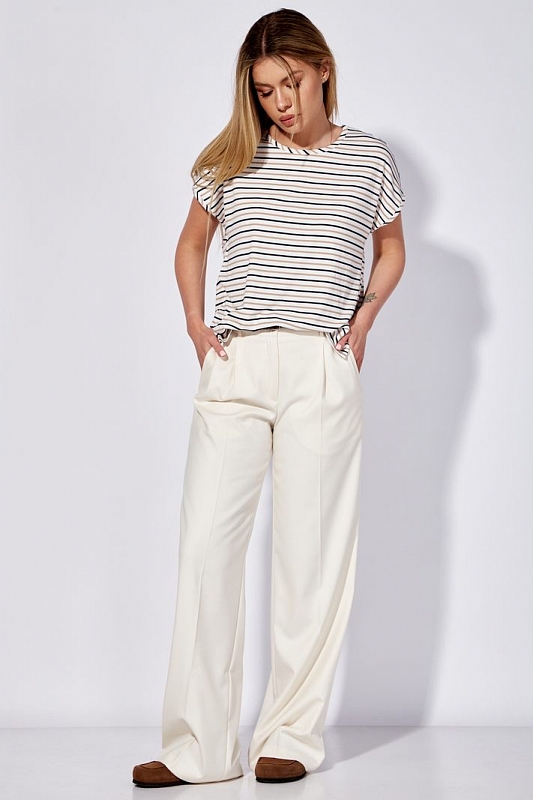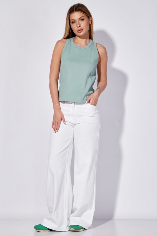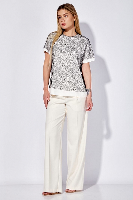 Базовые джинсы прямого силуэта, слегка зауженные к низу на притачном поясе с застежкой на молнию и пуговицу, с боковыми джинсовыми карманами спереди, с фигурной кокеткой и накладными карманами сзади.